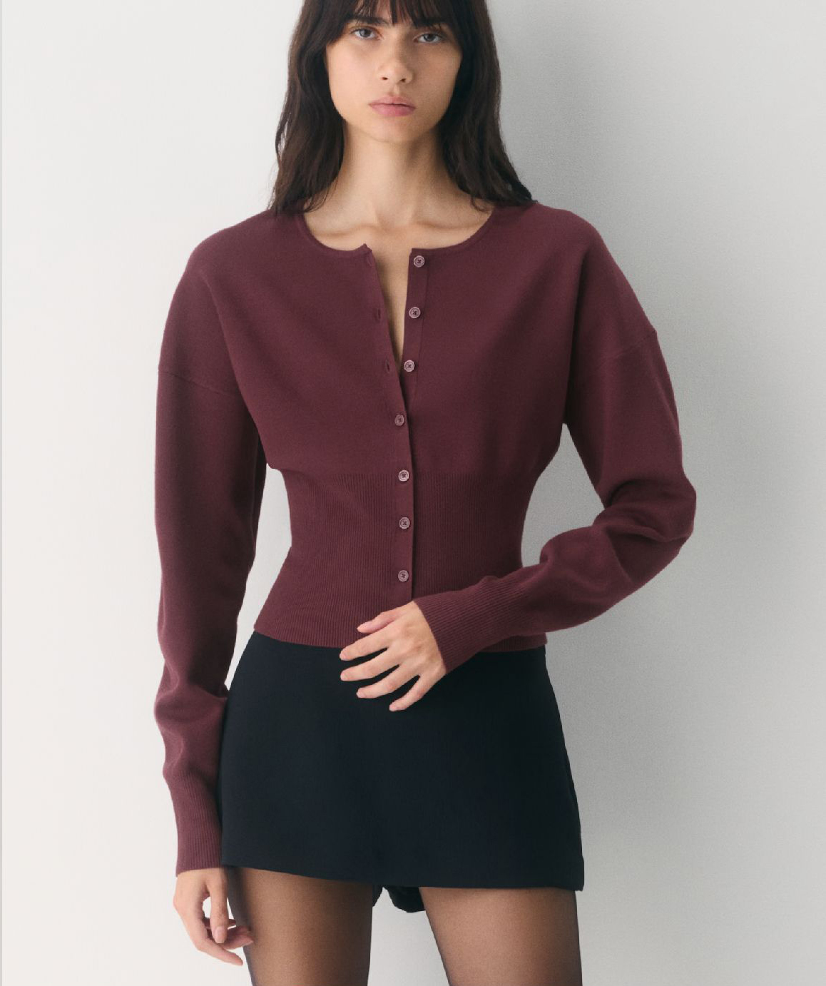 Жемчужная вязка делает кардиган чуть архитектурным. Рёбра — динамичными. А гладкий трикотаж приносит ощущение перьев на коже 🕊️. Цвет, который знает своё местоВ палитре приталенных кардиганов сейчас заметны два направления: